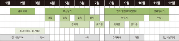 - 주의사항: 여름 태풍 대비를 위해 8월 전에 북주기 필수