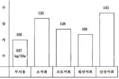 한편 석회물질 시용구에서 조섬유 함량은 무시용구와 비슷하거나 약간 증가된 반면 회분함량은 감소되는 경향이었다.