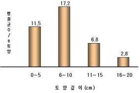 그림 3. 토양깊이별 뿌리썩음병균의 밀도