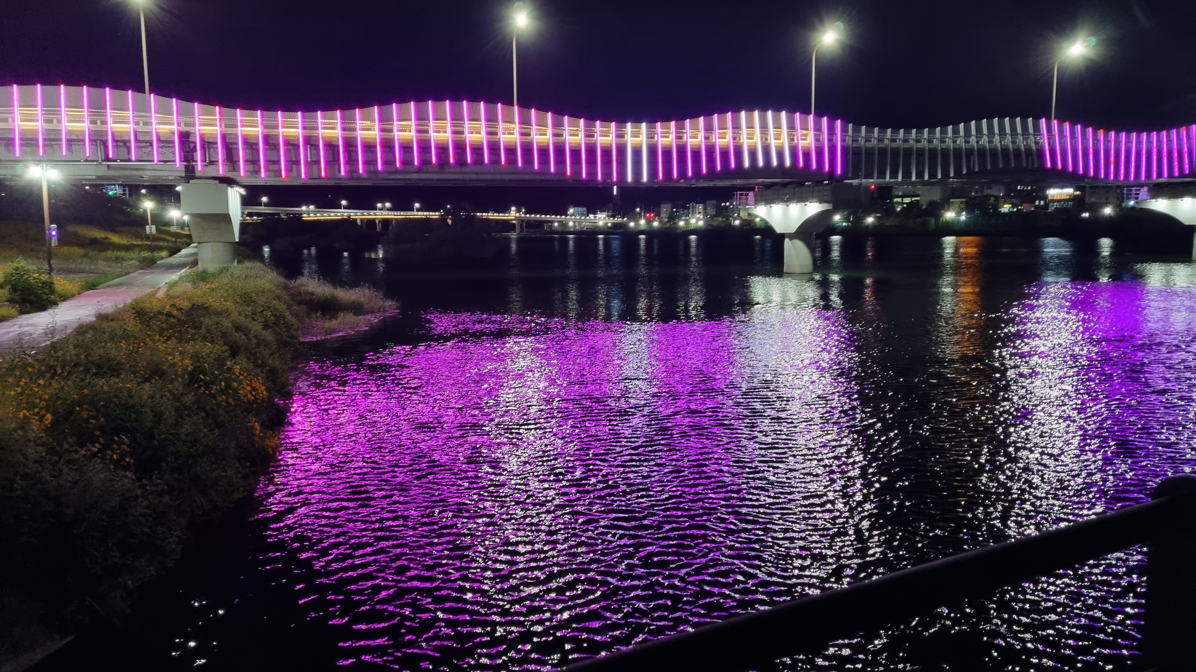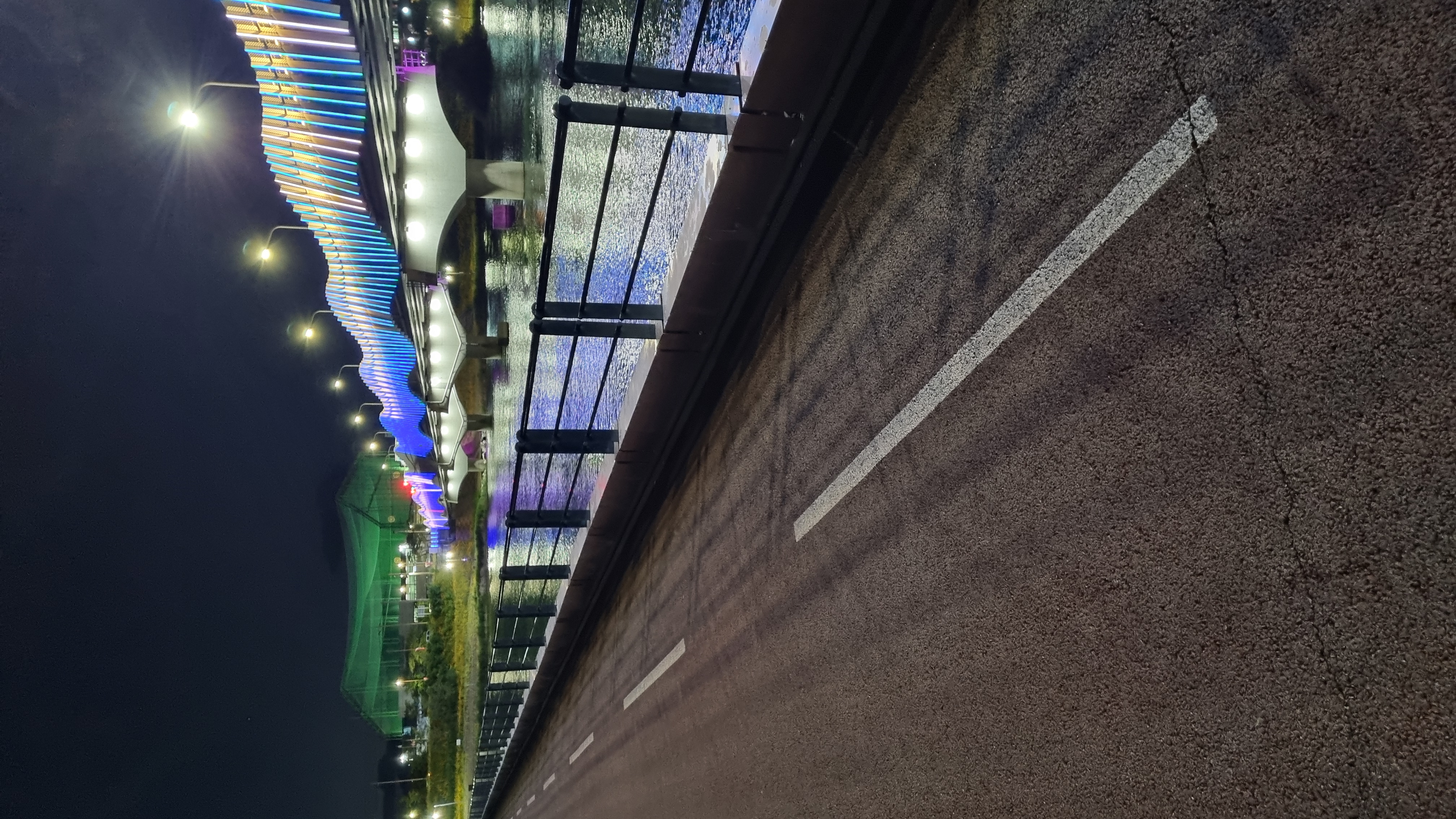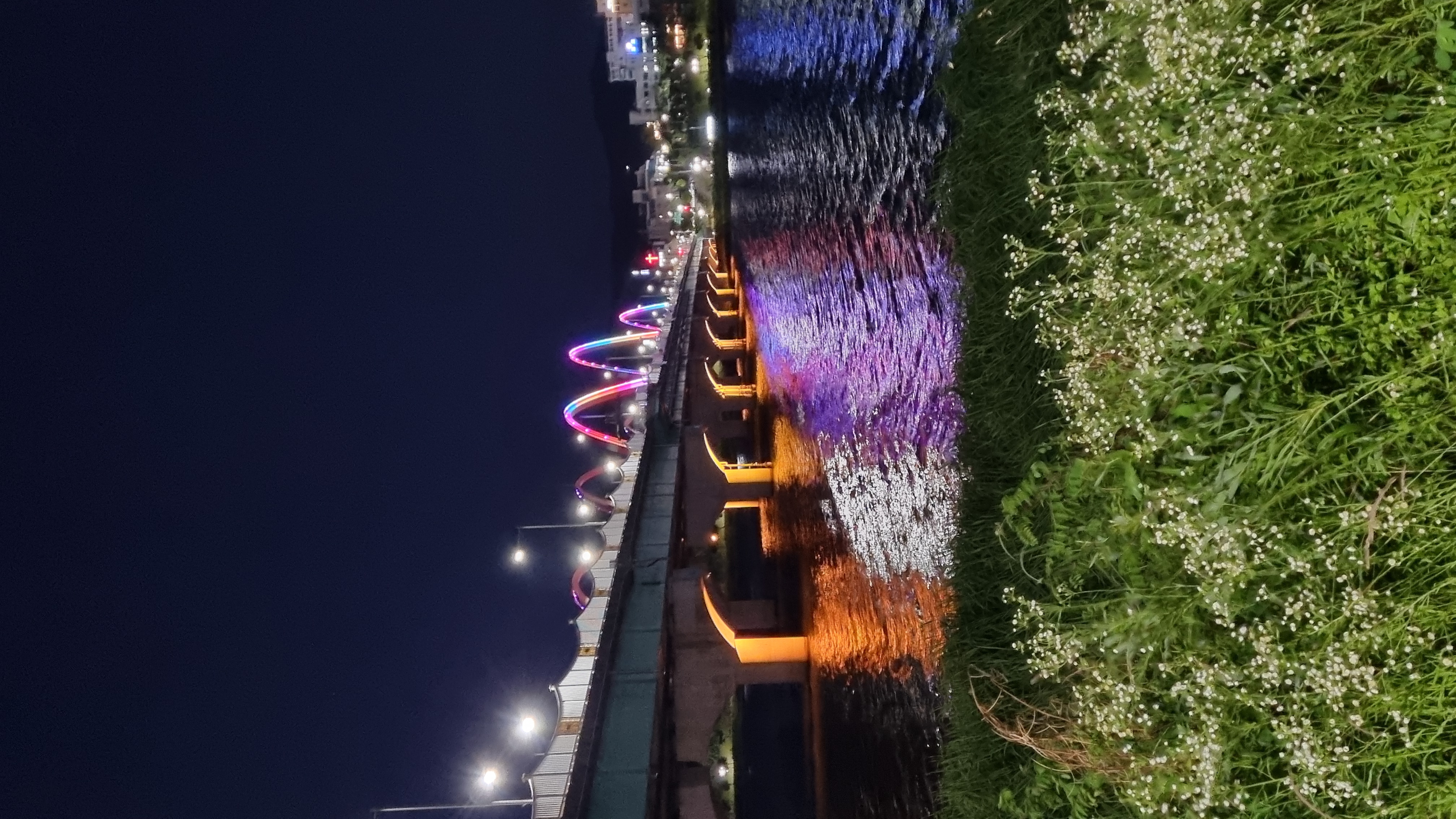 다리에서 비쳐지는  움직이는 LED 와 색깔이 변하면서 멋진