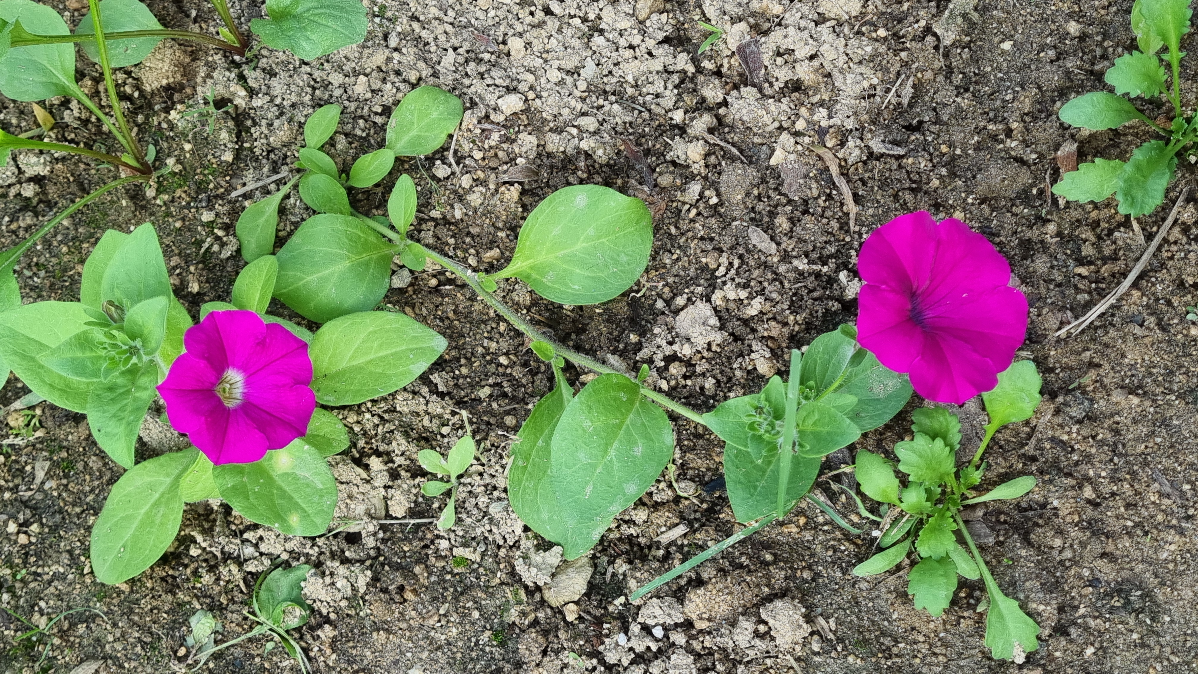 페츄니아 자연발아(Self-seeding)는 식물이 스스로 씨앗을 떨어뜨려 다음 해에 새로운 개체로 성장하는 자연스러운 현상입니다.